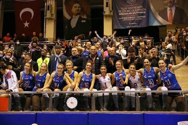 Kadınlar voleybolda ülkemizi CEV Challenge Kupası'nda temsil eden Aydın Büyükşehir Belediyespor, çeyrek final ilk maçında konuk ettiği Romanya ekibi CSM Lugoj'u 3-2 mağlup ederek 1 Şubat Salı günü deplasmanda oynayacağı rövanş mücadelesi öncesi avantaj yakaladı. Mimar Sinan Spor Salonu'nda 136 dakika süren randevuda 26-28, 25-16, 25-16, 22-25 ve 15-10'luk setlerle zafere uzanan mavi-beyazlılar, galibiyeti salonu doldurup kendisine büyük destek veren seyircisiyle kutladı.