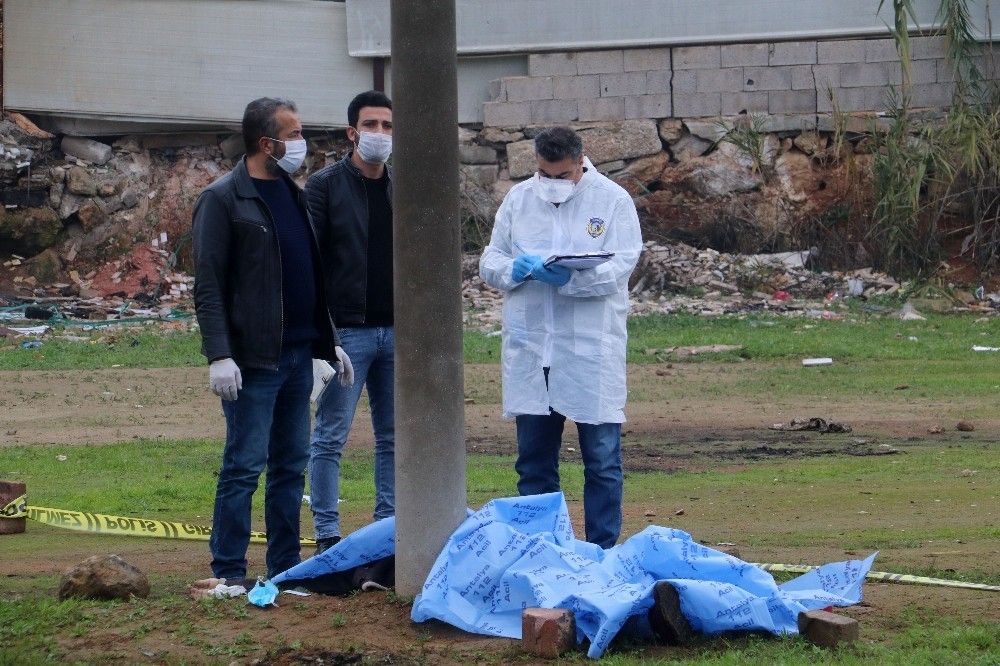 Antalya'da boş arazideki aydınlatma direğine dayalı vaziyette bir kişi ölü olarak bulundu. Kişinin hemen elinin yanında şırınga, su şişesi ve maske dikkat çekti.