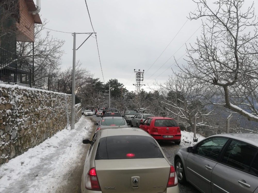 Aydın'ın yüksek kesimlerinde etkili olan kar yağışı sonrası, vatandaşların kar görme sefası araçların yolları kapaması ile çileye dönüştü.