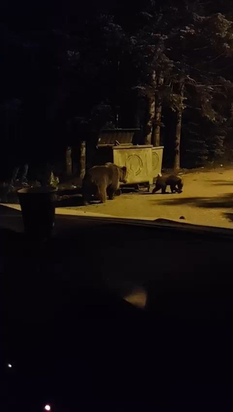 Kış turizminin gözde merkezlerinden Uludağ'a tatile gelen turist, çöp atacağı sırada karşısına çıkan ayıyı görünce hayvanın yüzüne ışık tutarak kaçtı. O anlar kameralara yansıdı. Sarıalan'daki ayı ve yavruları geçtiğimiz günlerde çöp konteynerini devirirken de görüntülenmişti.