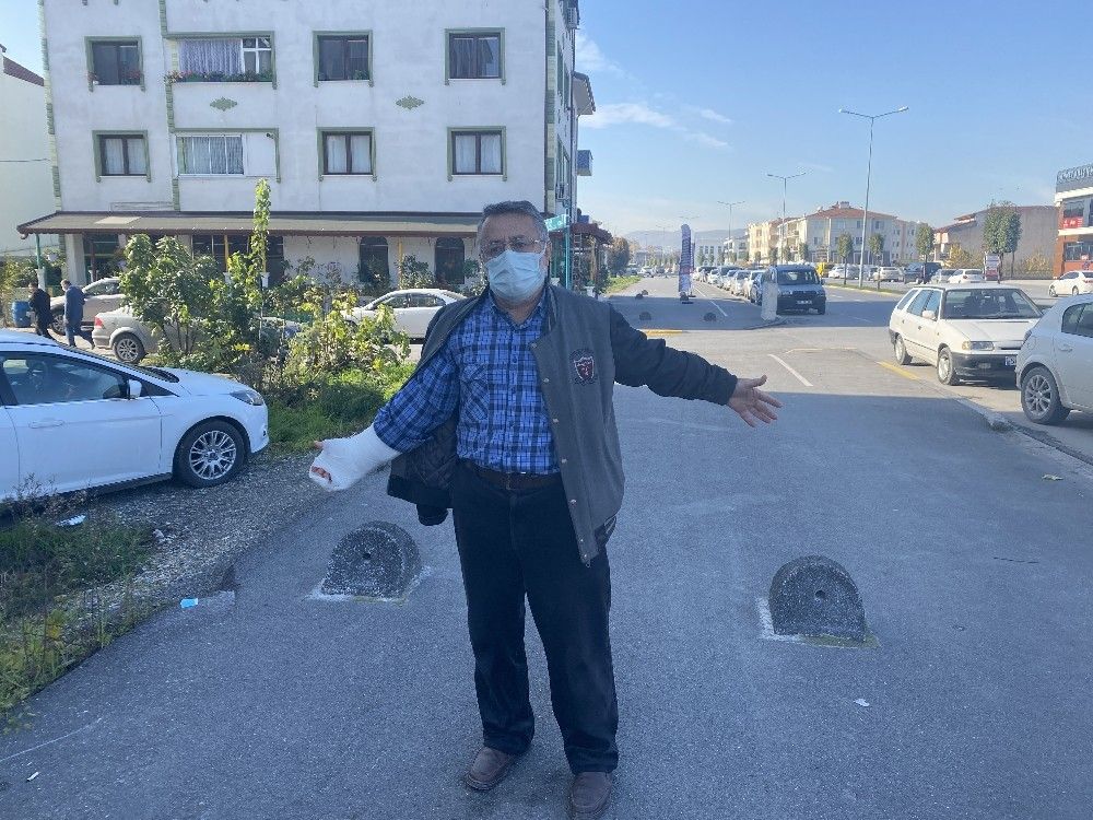 Olay, Sakarya'nın Erenler ilçesi Hacıoğlu Mahallesi Evliya Çelebi Caddesi'nde geçtiğimiz günlerde yaşandı. Aslen Trabzon'un Çaykara ilçesinden olan ve eşiyle birlikte Sakarya'da yaşayan 3 çocuk babası 59 yaşındaki Recep Dimaoğlu'nun iddiasına göre, Çarşamba Pazarı'nın kurulduğu alanda kaldırıma araçların park etmemesi için döşenen taşlar yüzünden ölümden döndü. Daha önce 5 kez takıldığı taşa altıncı kez takıldığında elindeki cam kavanozla yere düşen, kırılan kavanozun camları eline batınca 3 damarı kesilen Dimaoğlu hastaneye kaldırıldı. 4 saat ameliyatta kalan ve koluna 30 dikiş atılan Recep Dimaoğlu yaşadığı olaya isyan etti.