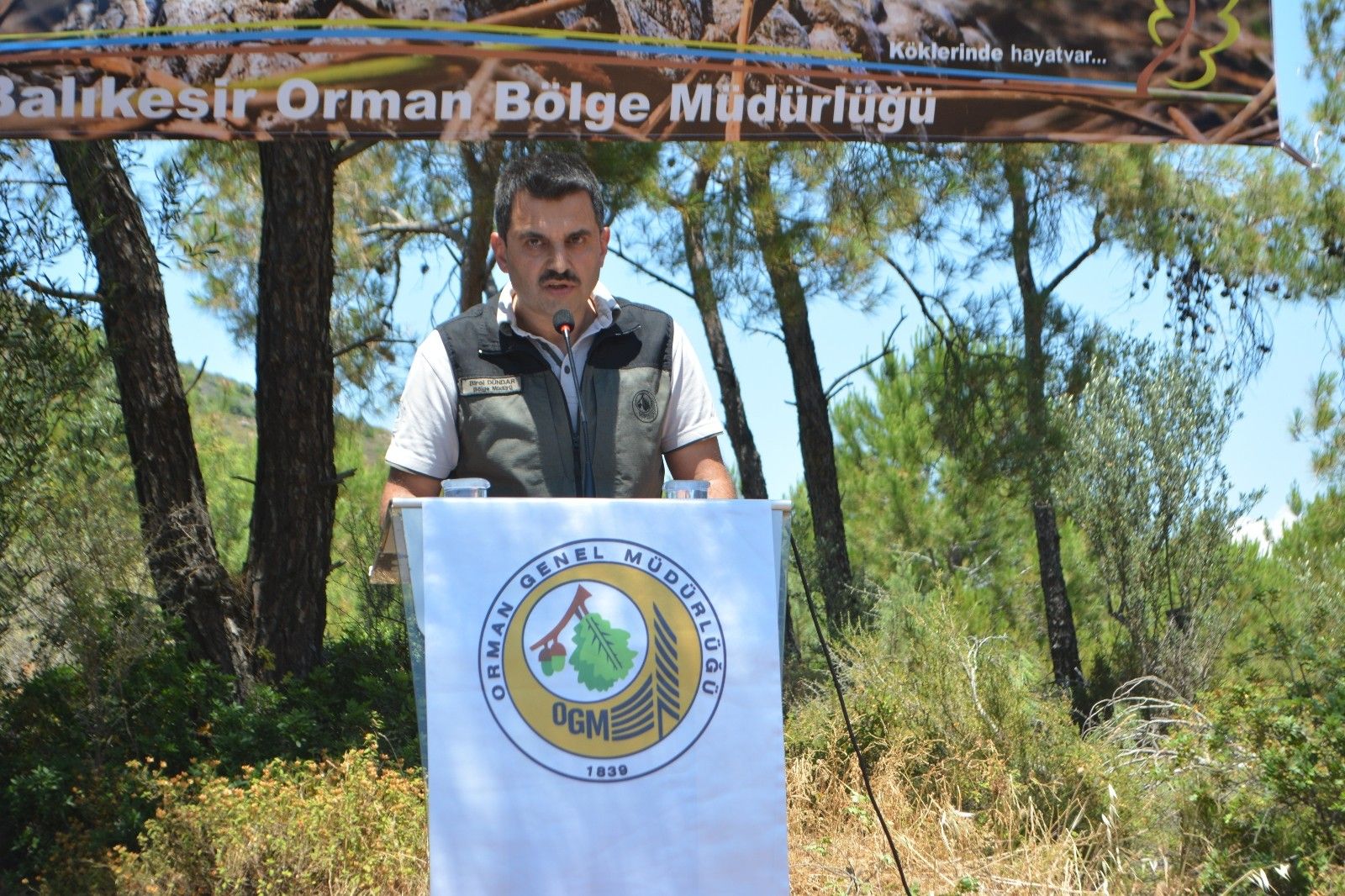 Programda konuşan Balıkesir Orman Müdürü Birol Dündar, geçtiğimiz yıl 19 Eylül 2020 tarihinde gerçekleşen yangında 24 bin 579 adet ağacın kül olduğunu belirterek, "Yanan alanda teknik ekiplerimizin yaptıkları incelemelerde bu alanda yeniden ağaçlandırma çalışmalarının dikim olarak değil de, doğal olarak gençleştirme yapılmasına kanaatine vardık. Yanan ağaçların kesilmesi ve alanın boşaltılmasının akabinde de sahada kalan yanan ağaç dallarının tekniğine uygun olarak serilme işlemi yapıldı. Mart ayı içerisinde de ilk çimlendirme çalışmamızın sonuçlarını almaya başladık. Halen daha çimlenme işlemi devam etmektedir. Ekiplerimizin fidan çalışmalarının sonucunda metrekarede 7-8 adet fidanın yeşermeye başladığını tespit ettik. Yani şu anda burada 70-80 bin fidan bulunmaktadır. Toplamda 3 buçuk 4 milyon civarında fidan var olmuş durumda. Bu gelişmenin ardından biz "Bir ölür, bin diriliriz' sözünü hatırladık. Sanki bu söz tamda bu yanan alanlar için gerçekleşmişti. Bu sahada 26 bin ağaç yanmıştı ama şimdi aynı sahaya 3 buçuk-4 milyon fidanımız geldi." dedi.