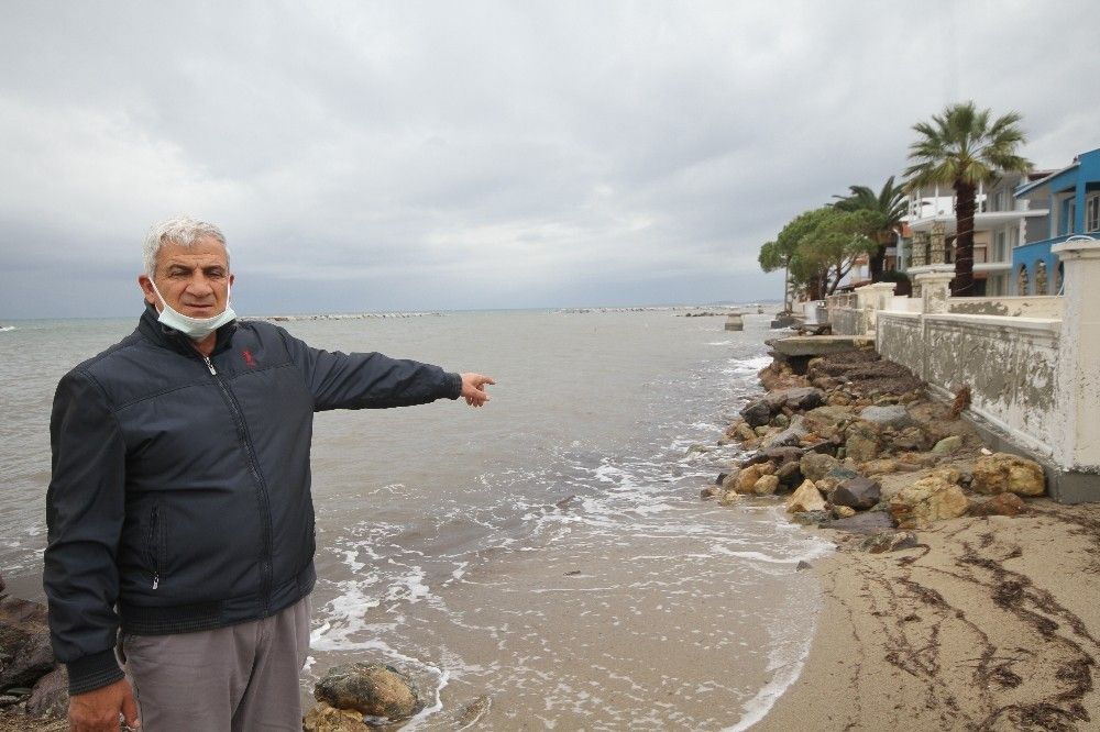 Bölge sakinlerinden Metin Tunçalp, erozyon sorununun yaklaşık 20 yıldan bu yana süregeldiğini kaydederek, "Buraya biz bir yıl önce site yönetiminde görev yaparken, evlerimizin sahil kısmına kendimize göre taşlar döktük. Bu döktüğümüz taşlar hakkında bizi şikayet ettiler. Belediyeden, valilikten, kaymakamlıktan gelip bize ceza yazdılar. Döktüğümüz taşlar da çare olmadı. Oysa yetkili kurumların burada yaşanılan sorunu gelip de yerinde incelemeleri lazım. Burada milyarlık konutlar var. Ama ne yazık ki şu anda bu evler her an denize kayıp yıkılma tehlikesi ile karşı karşıya. Bu bölgeye mendirekleri yapıldı. Ama bunların pek faydası olmadı. Kanalizasyonlar erozyonun olduğu bu bölgeden denize dökülüyor. Sağlık örgütleri nerede? Bütün pislik denize akıyor. Ama lafa gelince herkes konuşuyor. Oysa burada vatandaşlar da risk altında" dedi.