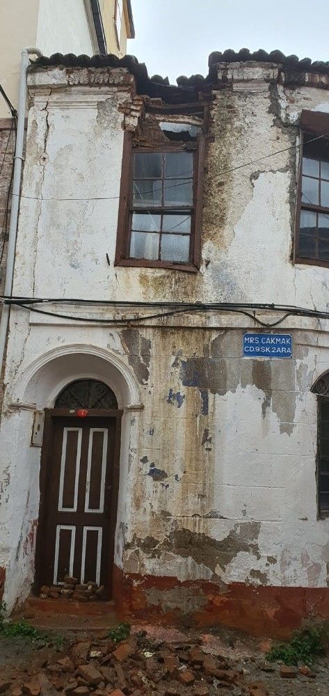 Ayvalık'ta tarihi bir ev yıkıldı, iki binanın çatısı çöktü