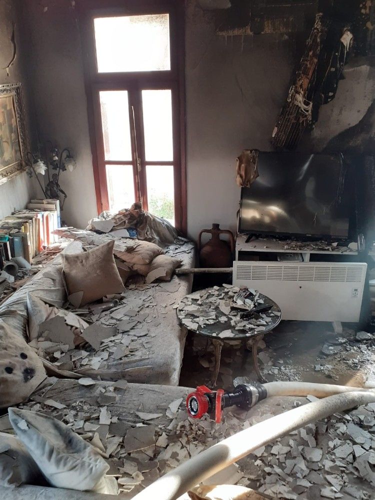 Alınan bilgiye göre, Cunda Adası'nda Namık Kemal Mahallesi Çınarlı Çeşme Sokak'ta bulunan iki katlı villanın ikinci katında öğle saatlerinde dumanlar yükselmeye başladı. Mahalle sakinlerinin ihbar etmesiyle olay yerine kısa sürede ulaşan Balıkesir Büyükşehir Belediyesi İtfaiye Daire Başkanlığı'na bağlı Ayvalık İtfaiye Grup Amirliği bünyesindeki ekipler yangına müdahale etti. Ev sahiplerinin dışarıda olduğu sırada yanan şömine ateşinden sıçrayan alevler neticesinde çıktığı öğrenilen yangında eşyalar pencere ve kapıların kapalı olması sebebiyle ısıdan zarar gördü. Olcay Güney'e ait evin içine yangını söndürmek için giren itfaiye ekipleri dumanların arasında mahsur kalan sevimli bir köpeği de kurtarmayı başardı.