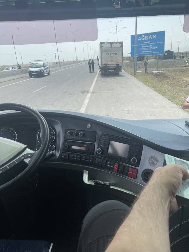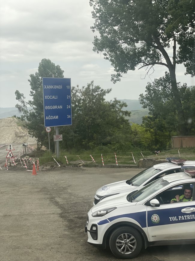 Ağdam’dan başlayarak Karabağ’a kadar olan yolda sıkı polis ve asker kontrolleri dikkat çekiyordu. Çünkü Ermenistan, geri çekilirken bölgeyi mayınlarla doldurmuştu. Yetkililer, yaklaşık 400 bin hektarlık alanın mayınlarla kaplandığını ve bugüne kadar sadece 100 bin hektarlık bölümün temizlenebildiğini belirtti.