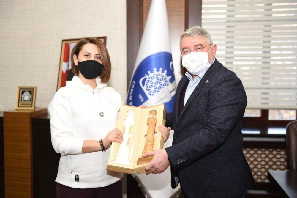 Belediye Başkanı Halil İbrahim Aşkın, Türkün bayrağının sonsuza kadar dalgalanmaya devam edeceğini belirterek, "Dünyanın, barışın kardeşliğin merkezine hoş geldiniz. 7 bin yıllık bir şehir burası. Çorum, birçok medeniyete beşiklik yapan kadim bir Anadolu şehri. Buradan Azerbaycan'daki tüm kardeşlerimize, Karabağ'da Türkün bayrağını dalgalandıran askerlerimize, Azerbaycan bayrağını orada dalgalandıran askerlerimize selam olsun. Şehitlerimize Allah'tan rahmet diliyoruz. Hem Türkün hem Azerbaycan bayrağını dalgalandırmaya devam edeceğiz. İki devlet tek milletiz. Biz sizi öz kardeşimiz olarak görüyoruz. Başarılı çalışmalarınızın devamını diliyoruz" dedi.