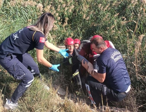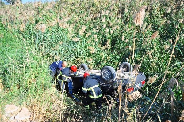 Saruhanlı'da, stabilize yolda takla atarak sulama kanalına uçan otomobilde yaralanan Adem Yiğit (39) ve yanındaki kızı Cemile Nur Yiğit (16), itfaiye ekiplerince kurtarıldı. Baba- kız, hastaneye kaldırıldı.