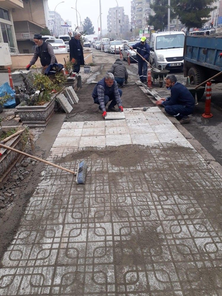 AK Partili Diyarbakır'ın Bağlar İlçe Belediyesi, korona virüs önlemleri kapsamında sokağa çıkma kısıtlamasının uygulandığı hafta sonlarında kaldırım ve sokak yenileme çalışmaları gerçekleştirip bozulan parke taşlarını yenileyerek sokakları güzelleştiriyor