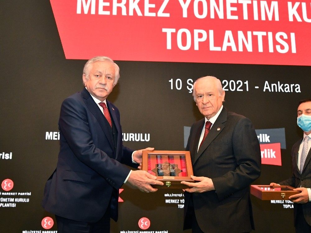 MHP Genel Başkanı Bahçeli, Merkez Yönetim Kurulu ile Merkez Disiplin Kurulu Ortak Toplantı sonrası yazılı bir açıklama yaptı. MHP açısından Türkiye'nin son üç yıllık zorlu dönemini 12. Olağan Büyük Kurultayı'n iradesiyle tezahür eden muhterem kadroların inançlı mücadelesi sayesinde göğüslendiğini belirten Bahçeli, "Nitekim oyunlar görülmüş, tuzaklar bozulmuş, komplolar dağıtılmış, kara kampanyalar berhava edilmiştir. Milliyetçi Hareket Partisi doğru zamanda, doğru yerde dosdoğru duruş sergilemiş, 'Önce ülkem ve milletim, sonra partim ve ben' ilkesini siyasetinin mihveri, Türk siyasetinin de mihrabı yapmıştır. Bu siyaset kavrayışıyla meseleler ele alınmış, gelişmelerin istikameti, gündemin ağırlık merkezine yerleşen konuların seyir ve ilerleyişi hem analiz hem de takip edilmiştir. Memnuniyetle ifade etmeliyim ki, ülkemizin hassas ve kırılgan bir döneminde MYK ve MDK'da sorumluluk üstlenmiş dava arkadaşlarım görevlerinin gereğini bihakkın yerine getirmişlerdir" ifadelerini kullandı.