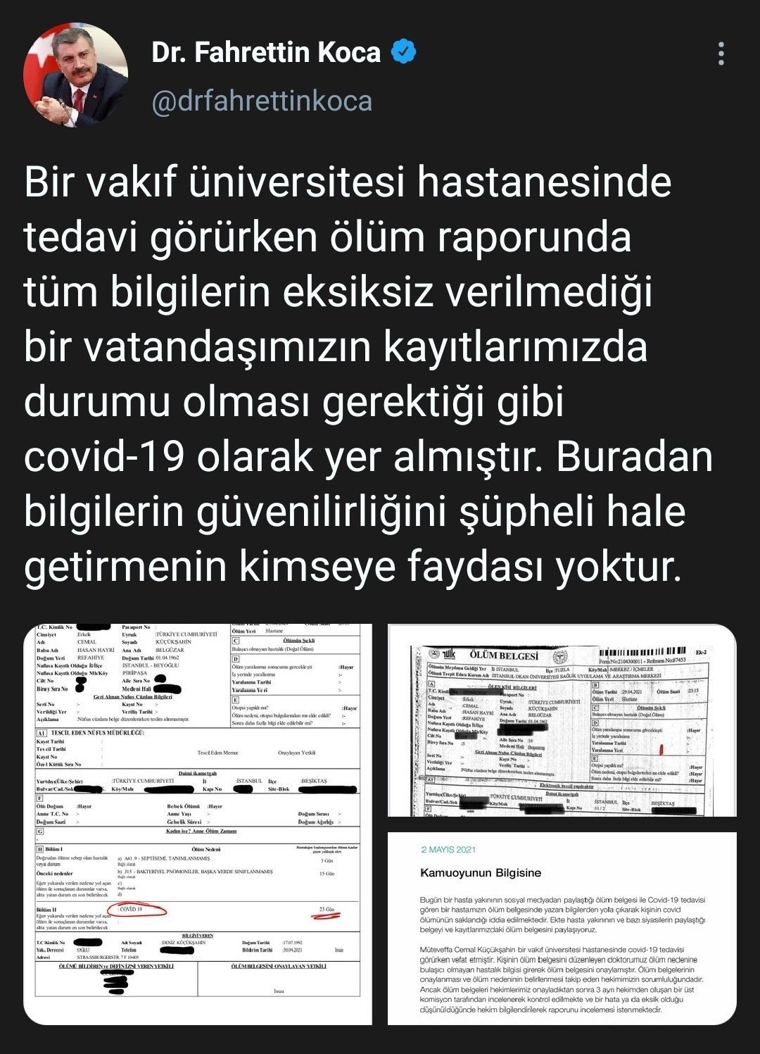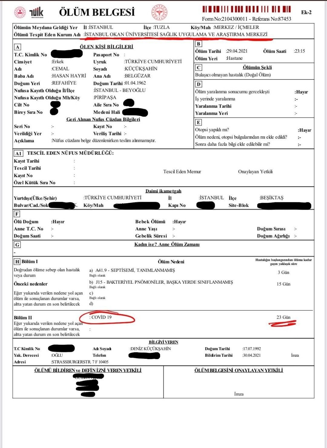 Özetle bir vakıf üniversitesi hastanesinde tedavi görürken ölüm raporunda tüm bilgilerin eksiksiz verilmediği bir vatandaşımızın devletimizin kayıtlarında durumu olması gerektiği gibi covid-19 olarak yer almıştır. Buradan bilgilerin güvenilirliğini şüpheli hale getirmenin kimseye faydası yoktur.