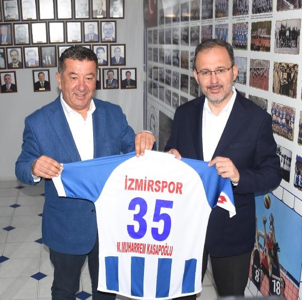 Gençlik ve Spor Bakanı Mehmet Kasapoğlu, Bölgesel Amatör Lig'e yükselen İzmirspor'u da ziyaret etti. Kulüp binasındaki ziyarette İzmirspor Başkanı Nedim Topaloğlu, Bakan Kasapoğlu'na forma hediye etti.