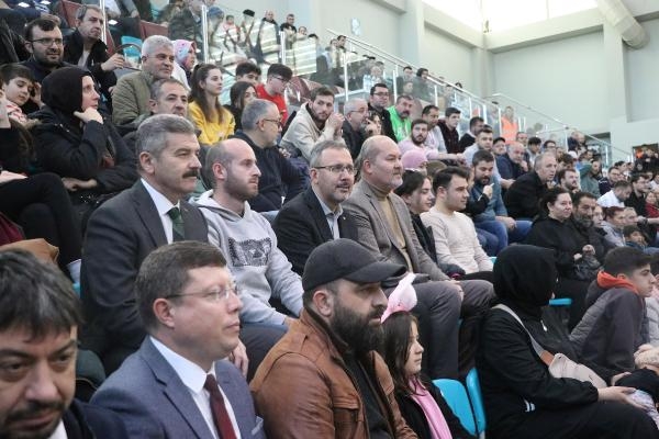 Bakan Kasapoğlu ardından Uşak Üniversitesi Kampüsü içindeki 2 bin kişilik kız yurdunun açılışını yaptıktan sonra spor salonunda oynanan İlkler Şehri Uşak-Aykanat Spor Kulübü basketbol maçını izledi. (DHA)