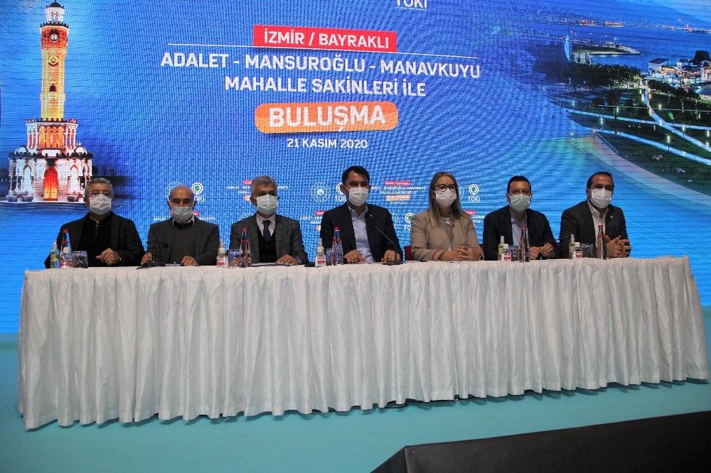 Çevre ve Şehircilik Bakanı Murat Kurum, 30 Ekim'de İzmir'de meydana gelen depremde Bayraklı ilçesinde en fazla hasarı alan Adalet, Mansuroğlu ve Manavkuyu sakinleriyle buluşma gerçekleştirmek üzere İzmir'e geldi. Bakan Murat Kurum, Bornova Kültür Merkezi'nde düzenlenen programda mahallelilerle bir araya geldi.