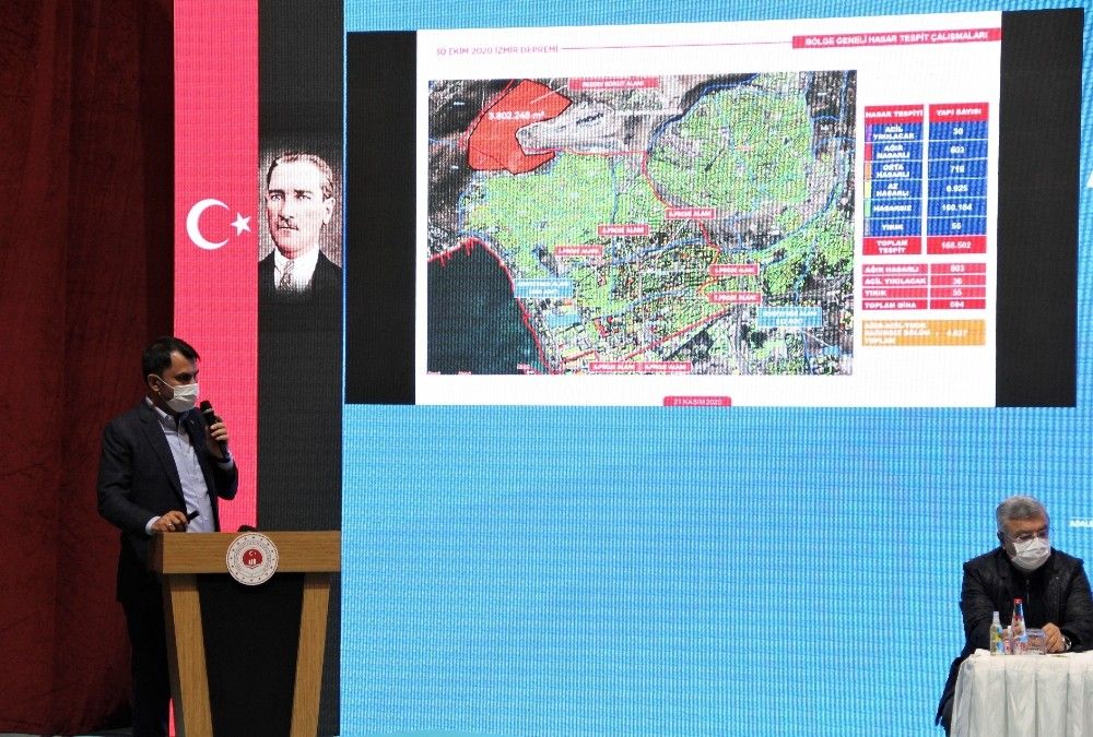 Bakan Kurum, konuşmasının ardından depremde ağır hasar alan apartman ve siteler hakkında vatandaşlara sunum yaparak yıkılan binaların yerine yapılması planlanan yeni binaların projelerini anlattı. Bakan Kurum, programın ardından dönüşüm yapılacak alanlarda inceleme yapmak üzere Bornova Kültür Merkezinden ayrıldı.