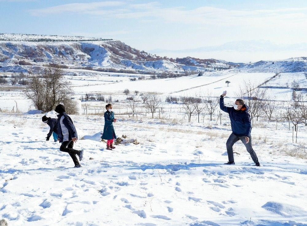 Bakan Selçuk öğrencilerle kar topu oynadı