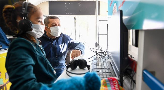 Bakan Selçuk, EBA Mobil aracında canlı derse katıldı