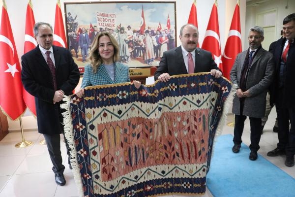 Sanayi ve Teknoloji Bakanı Mustafa Varank, Uşak Deri Karma Organize Sanayi Bölgesindeki deri işleme tesisinin açılışının ardından Uşak Valisi Funda Kocabıyık ve Belediye Başkanı Mehmet Çakın'ı makamlarında ziyaret etti.