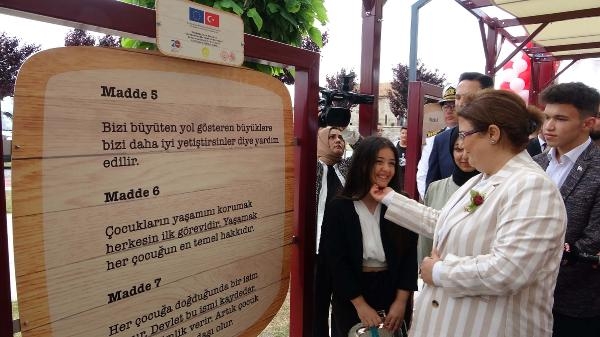 Konuşmaların ardından Bakan Yanık ve beraberindeki protokol üyeleri tarafından kurdele kesilerek, 'Çocuk Hakları Sokağı'nın açılışı yapıldı. Bakan ve beraberindekiler, Çocuk Hakları'nın yazılı olduğu panoların bulunduğu sokağı gezdi. (DHA)