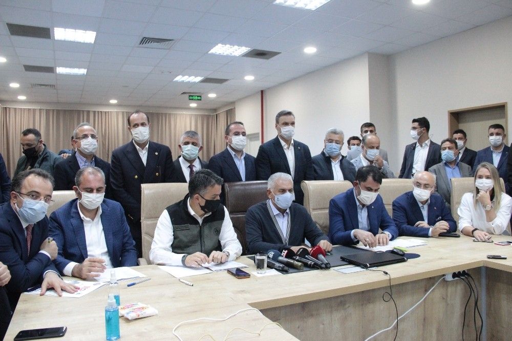 İzmir'de meydana gelen 6,6 büyüklüğündeki depremin ardından Çevre ve Şehircilik Bakanı Murat Kurum, Tarım ve Orman Bakanı Bekir Pakdemirli, Adalet Bakanı Abdülhamit Gül, 28. TBMM Başkanı Binali Yıldırım ve İzmir Valisi Yavuz Selim Köşger toplantı yaptı.