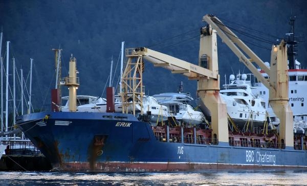 Bakımı yapılan lüks yatlar kargo gemisi ile gönderiliyor