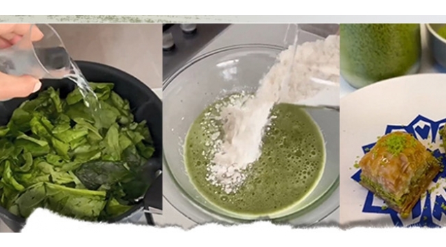 Son günlerde 'Ispanaktan antep fıstığı' yapımının anlatıldığı video, sosyal medyada gündem oldu. Videoda ıspanağı farklı işlemlerden geçirildikten sonra antep fıstığı görünümüne getirilip, baklavanın içerine konulduğu görülüyor. Videoyu çeken kişi bu tarifi bir baklava ustasından aldığını belirtiyor.