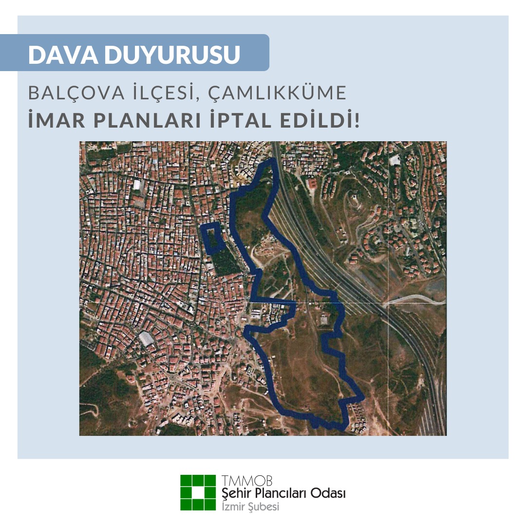 Balçova’da,İzmir-Çeşme Otobanı ile Hacı Ahmet Deresi arasında kalan bölgenin imar planları iptal edildi. Şehir Plancıları Odası İzmir Şubesi'nin açtığı davada 5. İdare Mahkemesi, “şehircilik ilkelerine aykırılık” gerekçesiyle söz konusu bölgenin 1/5000 ve 1/1000’lik planlarını geçersiz kıldı.