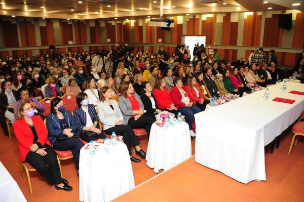 Türkiye Kadın Dernekleri Federasyonu Başkanı Canan Güllü de federasyonun çalışmalarıyla ilgili bilgiler vererek Türkiye'deki toplumsal cinsiyet eşitliği konusuna dikkat çekti. Kadınların insan haklarından daha fazla yararlanması adına gayretler gösterdiklerini anlatan Güllü, 81 ilde çalıştıklarını dile getirdi. CHP İzmir İl Başkanı Deniz Yücel ise konuşmasında hayata, zorluklara ve daha da ötesi erkeklere karşı mücadelesinde başarılı olan bu mücadeleyi hem kendileri hem hemcinsleri için sürdürmekte kararlı olan kadınları kutlayıp alkışladığını ifade etti. Yücel, "Zor olan her geçen gün şiddete uğrayan kadını ikinci sınıf insan gören bir anlayışın yönettiği Türkiye'de kadın olmak. Şunu bilin ki bu iktidar da gelip geçici ve sonu geldi. Kadının her dakika şiddete uğradığı, katledildiği, ikinci sınıf vatandaş olarak görüldüğü bir ortamda örgütlü mücadele ve İstanbul Sözleşmesi'nden hukuksuzca çıkanların cesaret edemediği etkin mücadeleyi hayata geçirdikleri için protokolü imzalayanlara teşekkür ediyorum. Tüm belediyelerde hayata geçmesi için her zaman sizlerin yanında olacağız" diye konuştu.
