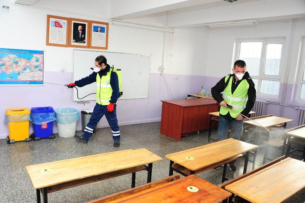 Balçova Belediyesi, 1 Mart'ta kısmen açılacak olan okulların dezenfeksiyonunu yaparak okulların diğer eksikliklerini giderdi.