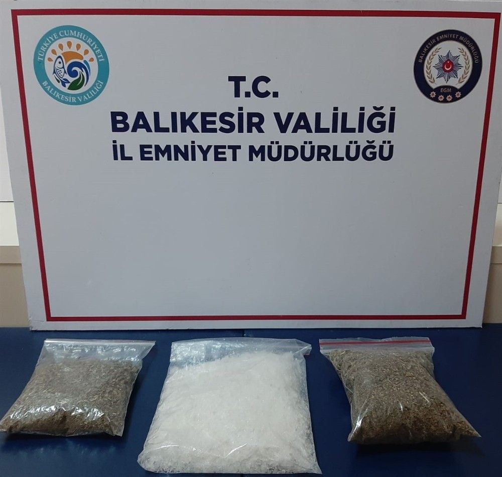 Balıkesir İl Emniyet Müdürlüğünce İl genelinde uyuşturucu madde ticareti ve kullanımını önlemeye yönelik olarak Balıkesir il merkezi, Bandırma, Ayvalık, Edremit, Burhaniye ve Gönen ilçelerinde yapılan 13 ayrı çalışmada 20 şüpheli şahıs yakalandı. Olaylarla ilgili yapılan aramalarda; 184,25 gram metamfetamin maddesi, 6,55 gram esrar, 1 adet sentetik ecza hap, 2 adet tabanca ve tabancalara ait 15 adet fişek, 1 adet ruhsatsız av tüfeği ve bu tüfeğe ait 62 adet kartuş, 4 adet uyuşturucu madde içiminde kullanılan ve payp olarak tabir edilen cam aparat ele geçirildi.