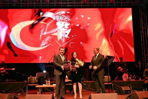 Konserin sonunda Balıkesir Valisi Hasan Şıldak ve Büyükşehir Belediye Başkanı Yücel Yılmaz, Gülay'a çiçek ve hediye takdiminde bulundu.(DHA)