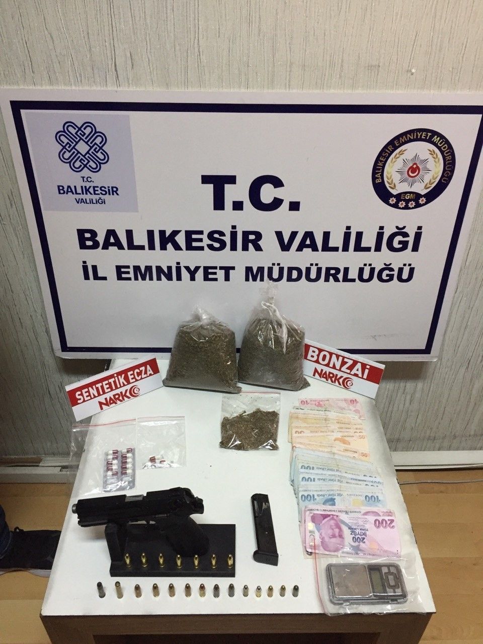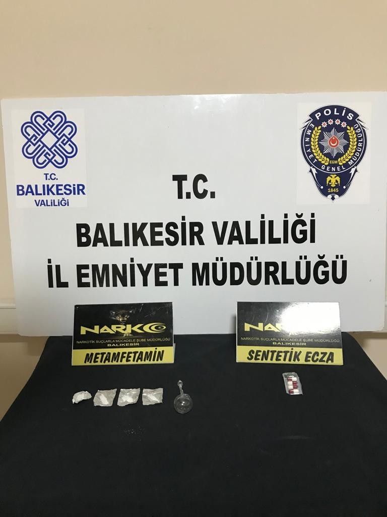 İl Emniyet Müdürlüğü Narkotik Suçlarla Mücadele Şube Müdürlüğü görevlilerince uyuşturucu madde ticareti, kullanımını ve sokak satıcılarının faaliyetlerini önlemeye yönelik olarak 03.06.2021 tarihinde il merkezi, Edremit, Bandırma, Manyas ve Burhaniye ilçelerinde yapılan 10 ayrı çalışmada, 14 şüpheli şahıs yakalanmış, 2 şahıs adli makamlara sevk edilmek üzere gözaltına alınırken, 12 şahıs ise haklarında yapılan adli işlemler sonrası serbest bırakıldı. Olaylarla ilgili yapılan aramalarda; 19,60 gram metamfetamin, 965,17 gram sentetik kannabinoid bonzai, 3 gram esrar, 19 adet sentetik ecza hap, 1 adet ruhsatsız tabanca ve 21 adet tabanca fişeği, 1 adet uyuşturucu madde satışı için kullanılan dijital hassas terazi, uyuşturucu madde ticaretinden elde edilen 3 bin 485 TL nakit para, 1 adet uyuşturucu madde içiminde kullanılan ve payp olarak tabir edilen cam aparat ele geçirildi.