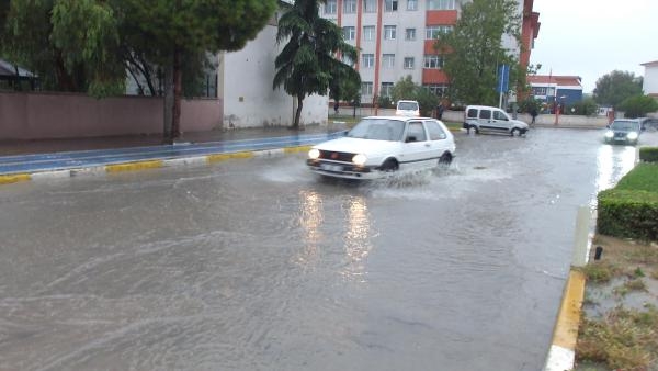 Meteoroloji Genel Müdürlüğü'nün şiddetli yağmur uyarısı yaptığı Balıkesir'de sağanak, sabahın erken saatlerinde Burhaniye'de etkili oldu. Cadde ve sokaklar, kısa sürede göle dönerken, trafikteki sürücüler, araçlarıyla ilerlemekte güçlük çekti. Belediye ekipleri ise tıkanan mazgallara müdahale etti. Ekipler, cadde ve sokaklarda temizlik çalışması başlattı.