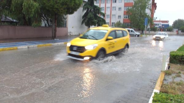 BALIKESİR'in Burhaniye ilçesinde, aniden bastıran kuvvetli yağış etkili olurken, yollar kısa sürede göle döndü.