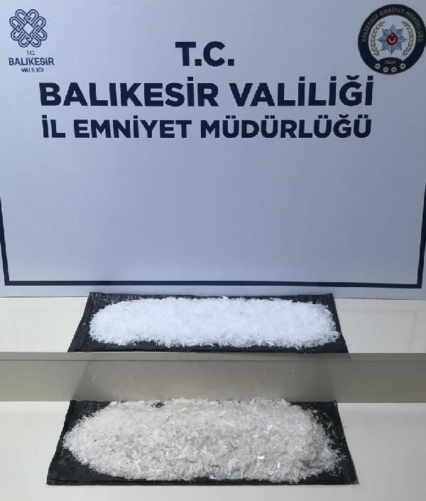 BALIKESİR'in Bandırma ilçesinde, polisin düzenlediği operasyonda 1,5 kilogram metamfetamin ele geçirildi, 6 şüpheli de gözaltına alındı