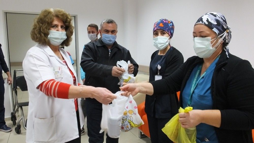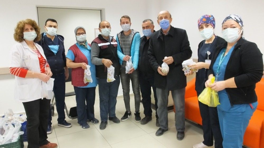 Başhemşire Nurcan Açan Akpınar da," Bizi bu süreçte yalnız bırakmayan arıcılarımıza bütün sağlık çalışanları adına teşekkür ediyorum" dedi. Bal ve polen ikramı için sağlık çalışanlarını ziyaret ettiklerini anlatan Emekli Öğretmen Aydın Kunter, "Türkiye Tarım, Hayvancılık ve Arcılık Platformu üyeleri olarak geçtiğimiz yılda polis ve jandarmalarımıza bal ve polen ikramı yapmıştık. Bu gün de çok özverili bir şekilde görev yapan sağlık çalışanlarına bal ve polen ikramı için buradayız. Bize destek olan arıcı arkadaşlarımıza teşekkür ediyorum. Her zaman sağlık çalışanlarının yanında olacağız" dedi.