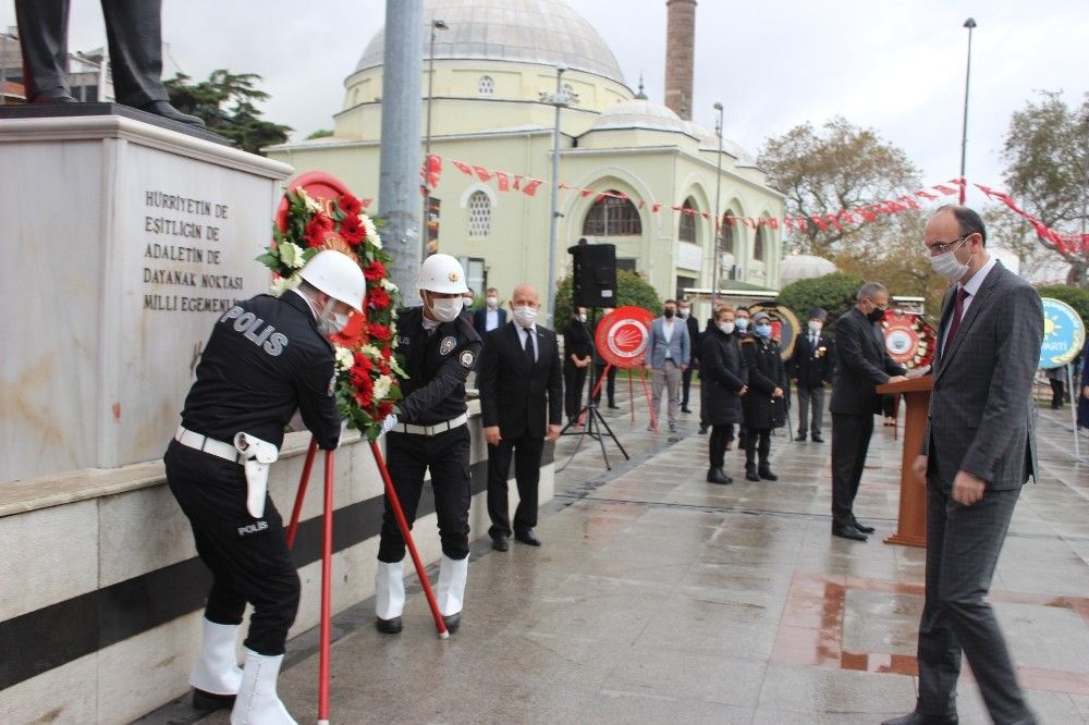 Anma töreninde günün anlam ve önemine belirten konuşmayı Bandırma Onyedi Eylül Üniversitesi Öğretim Üyesi Dr. Resul Yavuz "Büyük Önder Gazi Mustafa 82. yıl dönümünü anmak üzere burada toplanmış bulunmaktayız. Bugün burada biz "özgürlük ve bağımsızlık benim karakterimdir" diyen ve bu yönüyle de liderliğini yürüttüğü Türk İstiklal Savaşı ile mazlum milletlere örnek olan bir dünya liderinin aziz hatırası önünde saygıyla eğilerek toplanmış bulunmaktayız" dedi.