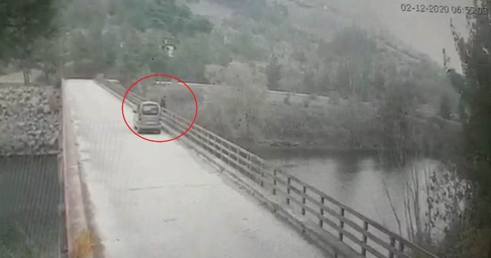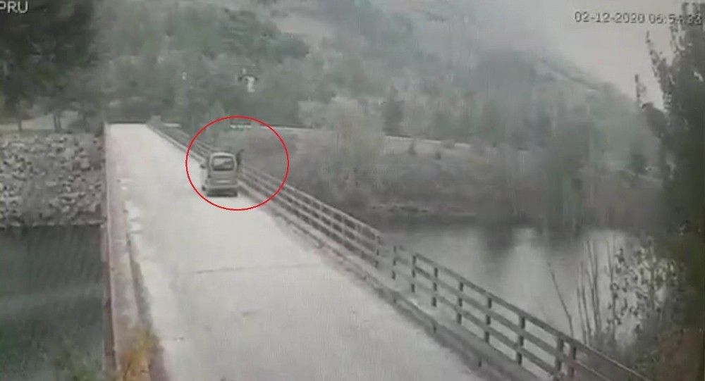 Samsun'un Bafra ilçesinde köprüden baraj gölüne atlayıp kaybolan kadının aracı ile köprüyü gelip atlama anının güvenlik kamerası görüntüsü ortaya çıktı.