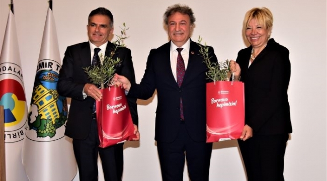 Toplantının sonunda Bornova Belediye Başkanı Dr. Mustafa İduğ, İTB Yönetim Kurulu ve Meclis Üyelerine nesilden nesile kültürel miras olarak aktarılan ve Bornova Belediyesi’nin Kayadibi’nde kurduğu Atalık Tohum Bahçesi’nde yetiştirilen Bornova kınalı bamyası ve karışık sebzelerden oluşan tohumları ve zeytin fidanı hediye etti.