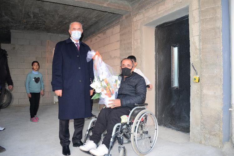 Van'ın merkez Tuşba Belediye Başkanı Salih Akman, geçirdiği iş kazası sonucu 2 ayağı tutmadığından dolayı 5 yıldır tekerlekli sandalyeye mahkum bir şekilde evde yaşamını sürdüren Fikri Ataş isimli vatandaş için asansör yaptırdı