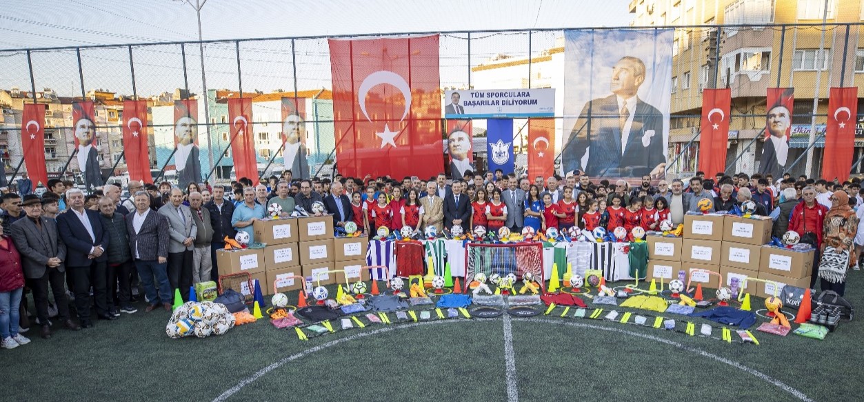 Konak Belediye Başkanı Abdül Batur, sporcuların yeni sezonda kullanacağı malzeme ve kulüplerin katılım paylarını içeren destekle amatör sporcunu yanında oldu. Daha önce Halkapınar’da amatör sporun hizmetine sunulacak yeni sahaların müjdesini veren Başkan Batur, şimdi de malzeme desteğiyle sporcunun yanında.