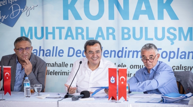 Belirli aralıklara Konaklı muhtarlarla bir araya gelen Konak Belediye Başkanı Abdül Batur, Kurban Bayramı öncesi muhtar buluşmalarına hız verdi. Bölge bölge düzenlenen toplantılarda bayram dileklerini de ileten Başkan Batur, hem muhtarların mahalleleri adına ilettiği talepleri birinci ağızdan dinledi hem de belediyenin çalışmalarıyla ilgili bilgilendirme yaptı. Konak Belediyesi Çınarlı Rekreasyon Alanında gerçekleştirilen toplantılarda Başkan Batur ilk olarak Kemeraltı, daha sonra da Eşrefpaşa bölgelerinde görev yapan muhtarlarla bir araya geldi. Toplantılar Alsancak, Basmane, Gültepe, Konak, Yenişehir, Güzelyalı ve Hatay bölgeleriyle devam edecek.
