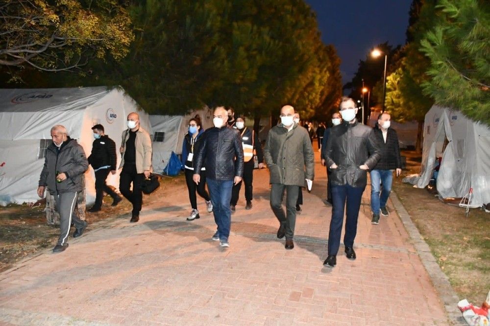 Devrek Belediye Başkanı Çetin Bozkurt, İzmir'deki deprem sonrası depremzedeler için kurulan çadırların olduğu bölgeyi ziyaret etti