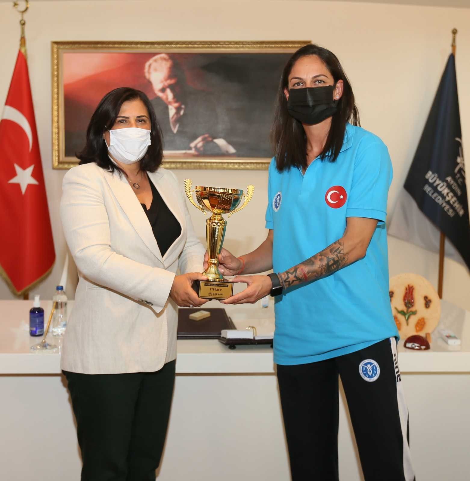 Takım sporlarında Aydın'a tarihinde ilk kez uluslararası bir kupada şampiyonluk kazandıran 'Aydın'ın Sultanları' Aydın Büyükşehir Belediye Başkanı Özlem Çerçioğlu'nu makamında ziyaret etti. Takım, kazandıkları Balkan Kupası'nı Başkan Çerçioğlu'na takdim ederken, Başkan Çerçioğlu Aydın'ın Sultanları ile gurur duyduklarını söyledi.