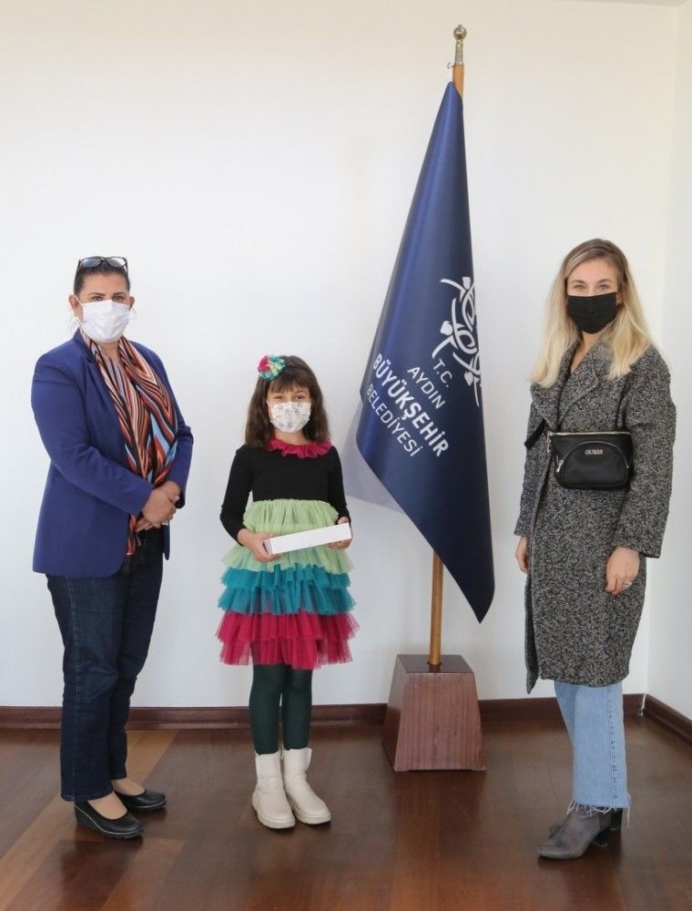 Güney Florida Uluslararası Piyano Yarışması'nda 6-8 yaş grubunda birinciliği elde eden Derin Sagut, annesi Perihan Sagut ile birlikte Aydın Büyükşehir Belediye Başkanı Özlem Çerçioğlu'nu makamında ziyaret etti.