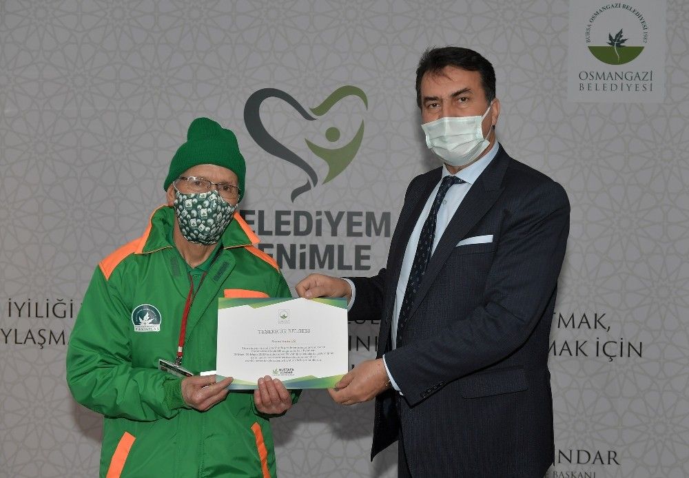 Osmangazi Belediye Başkanı Mustafa Dündar, pandemi sürecinde özveriyle çalışan belediye personeline teşekkür belgesi verdi