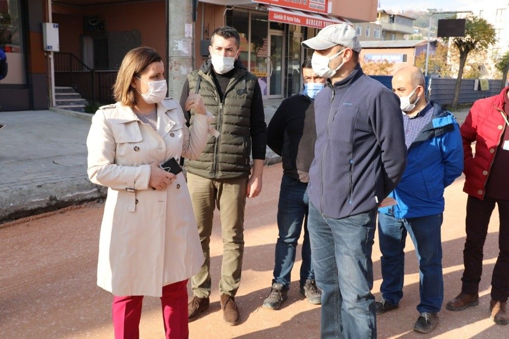 İzmit Belediye Başkanı Fatma Kaplan Hürriyet, Yenişehir Mahallesi Ova Sokak'taki asfalt çalışmalarını yerinde inceledi