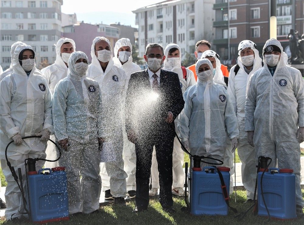 "İlimizde Covid-19 salgınına bağlı olarak pozitif vakaların yeniden yükselişe geçmesi nedeniyle valiliğimizin koordinasyonunda oluşturulan ilaçlama ekibimiz, kamu kurum ve kuruluşlarının yanı sıra şehrimizin farklı bölgelerindeki çalışmalarını hızlı bir şekilde sürdürüyor. Bu kapsamda 4 Kasım 2020 tarihinden bu yana Park ve Bahçeler Müdürlüğü'müz bünyesindeki 326 park, 3 adet tanker ve 6 personelimiz tarafından düzenli bir şekilde dezenfekte ediliyor. Temizlik İşleri Müdürlüğü'müze bağlı 12 personelimiz, Belediye Hizmet Binasını, Cumhuriyet Caddesini, Atatürk Bulvarını, Ulu Cami çevresi ve mücavir alan içerisinde bulunan camilerde, Ulaşım Hizmetleri Müdürlüğü'müze bağlı 6 personelimiz, Halk Otobüsleri ve durakları, Ticari Taksiler, Otogar, Anadolu Garajı olmak üzere günlük ortalama 400 araçta, Veteriner İşlerimiz Müdürlüğümüze bağlı 4 personelimiz İl Özel İdaresi'nden gelen 6 personel ile birlikte Ilıca bölgesi, Yoncalı Mahallesi, Saman Pazarı, Hürriyet Caddesi, Kıbrıs Caddesi, Sarraflar içi, Pekmez Pazarı, Menderes Caddesi, Paşam Sultan Civarı, eski hanlar civarı, Atatürk Bulvarı, Ulu Cami civarı, Abdurrahman Karaa Bulvarı ve Meydan Caddesi'nde dezenfeksiyon hizmetlerini sürdürüyor. Dezenfeksiyon çalışmalarımızı hızlı titiz bir şekilde sürdüren ekiplerimize teşekkür ediyor, hemşehrilerimize sağlıklı günler diliyorum. Vatandaşlarımızdan ricam, bu kritik dönemde maske, sosyal mesafe ve temizlik kurallarına riayet ederek mahallelerimize, caddelerimize iş yerlerimize ve kamu binalarımıza sahip çıkmaları..."