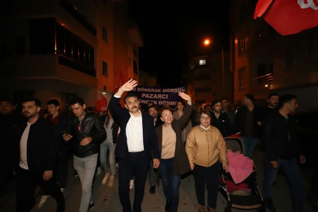 CHP Dikili Seçim Koordinasyon Merkezi’nden 3500 kişi eşliğinde yürüyerek İsmetpaşa Mahallesi’ne giden Başkan Kırgöz, mahalle sakinleri tarafından meşaleler, çiçekler ve oyun havaları ile karşılandı.