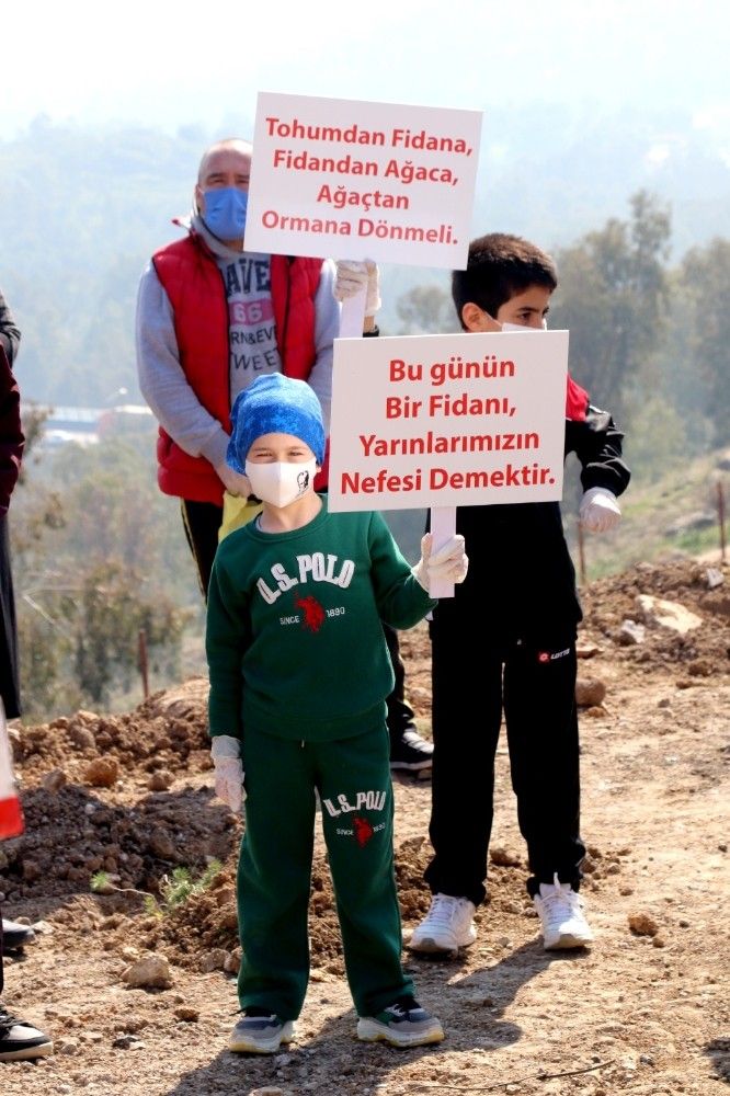 Ayrıca çocuklar ve sporcular; "2021'de bir iyilik de sen yap", "Bir fidan, bir gelecektir", "Geleceğimiz için fidan dikin", "Çevremizdeki yeşil alanlara sahip çıkalım", "Heyelan ve sel olmasını istemiyorsak, ağaçlarımızı koruyalım", "Bugünün bir fidanı yarınların nefesi demektir" yazılı dövizlerle doğa sevgisi konusunda farkındalık oluşturdu. Başkan Sandal, duyarlılıklarından dolayı tüm çocuklara ve öğrencilere teşekkür ederek doğaya sahip çıkmalarını istedi.